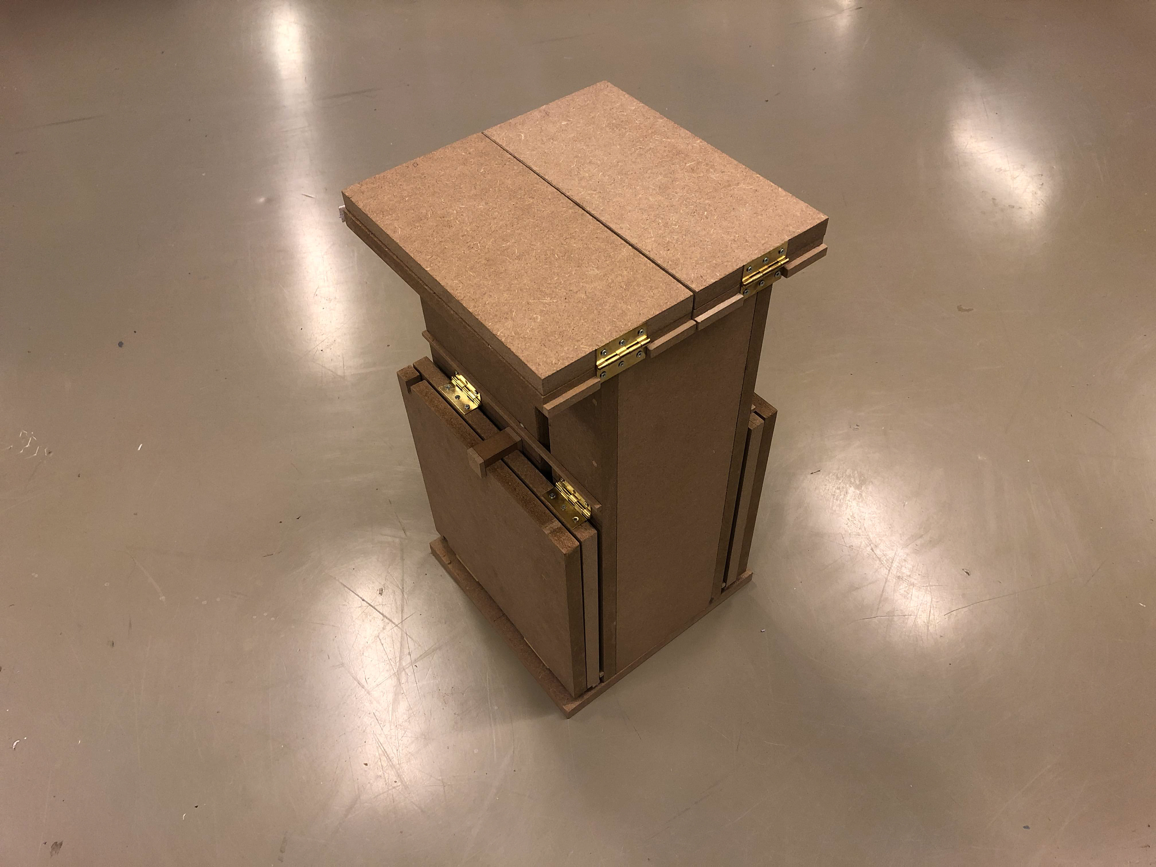 Furthermore, I learned some hard skills such as working with the hand sanding machine, the jigsaw and I also did some metalworking. Furthermore, interesting interactions and movements were created to transform the stool, not revealing how to approach the stool and challenging the viewer to discover its action possibilities
